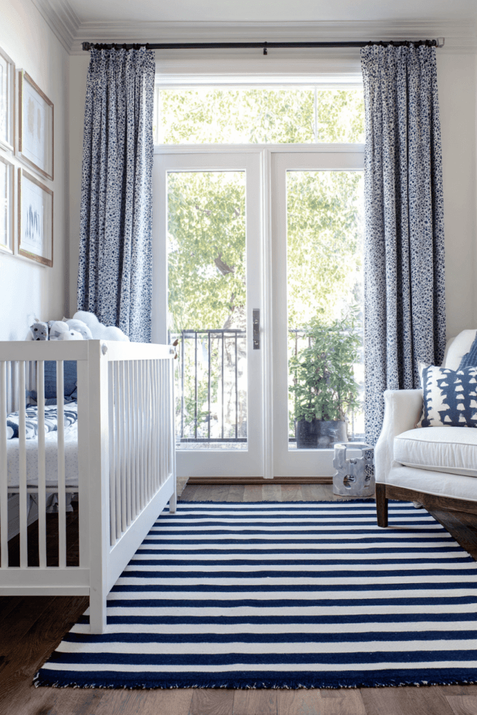Stripes are a nautical design staple. Incorporate them through area rugs, curtains, or crib skirts in shades of navy, white, and red. Striped fabrics bring visual rhythm to the room, balancing solid-colored furniture and walls. Choose bold, wide stripes for a classic look or narrow stripes for a softer, more contemporary vibe.