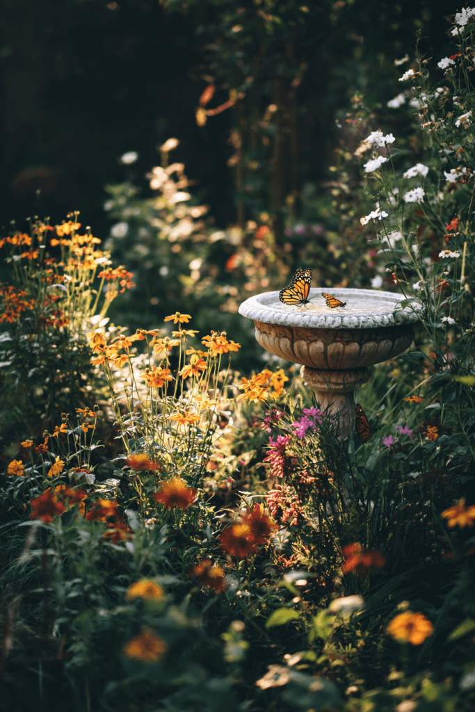 Attract butterflies, bees, and birds by planting native flowers and installing a small birdbath. These visitors add life and movement to your garden, and supporting pollinators is great for the environment.