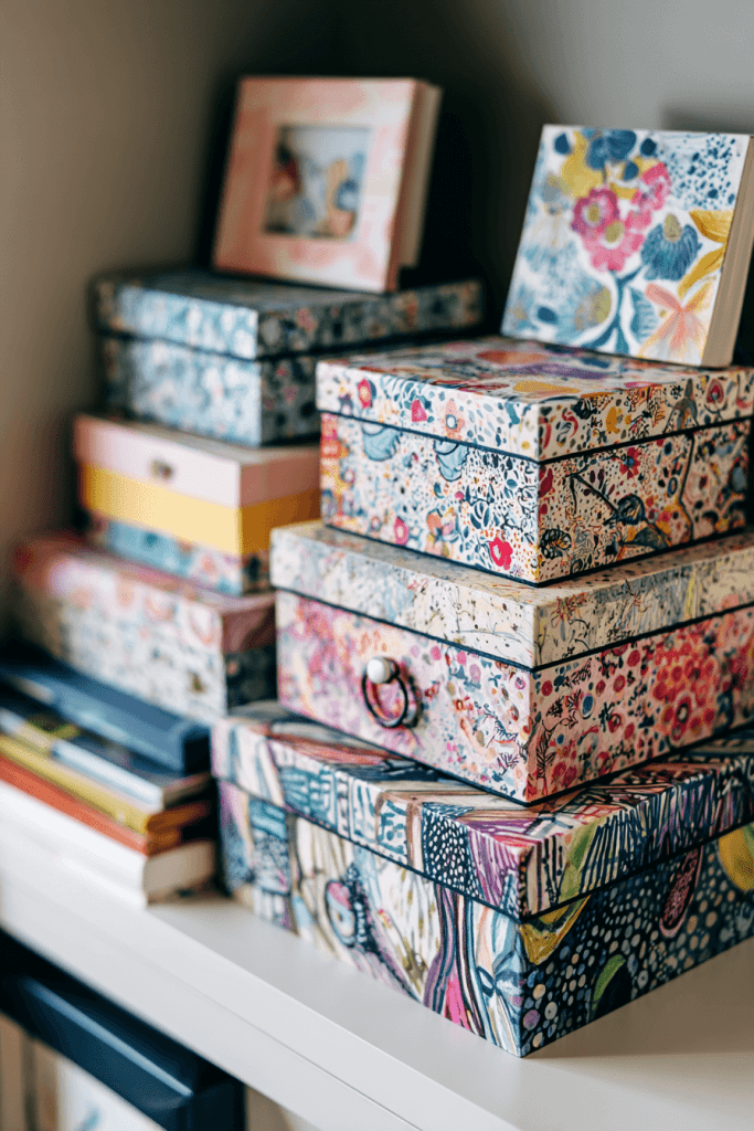 Store the boxes in a closet or under the bed. Encourage kids to curate their favorite pieces a few times a year—it’s a great way to reduce clutter and celebrate what matters most.