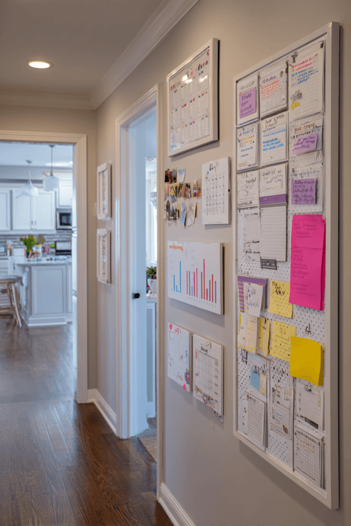Keep everyone on track with a family command center in a common area. Include a calendar, chore chart, and space for important papers or reminders.