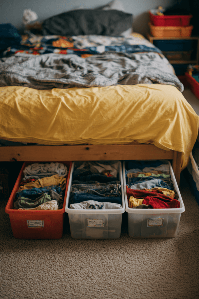 Make the most of hidden spaces with under-bed drawers, rolling bins, or flat storage boxes. These are perfect for out-of-season clothes, extra bedding, or even puzzles and games.