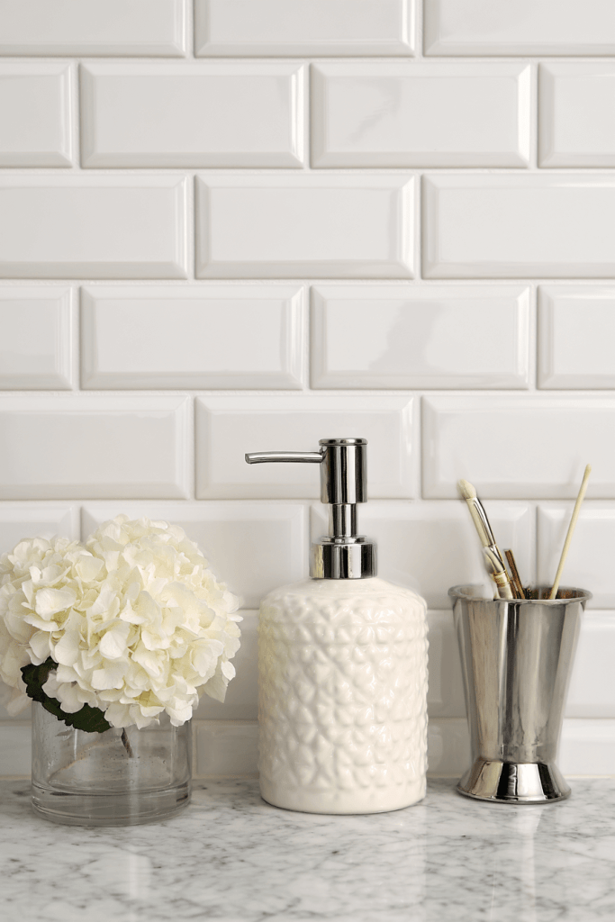 Think stylish soap dispensers, chic trays, wall art, or even a set of matching jars for cotton balls and Q-tips.
