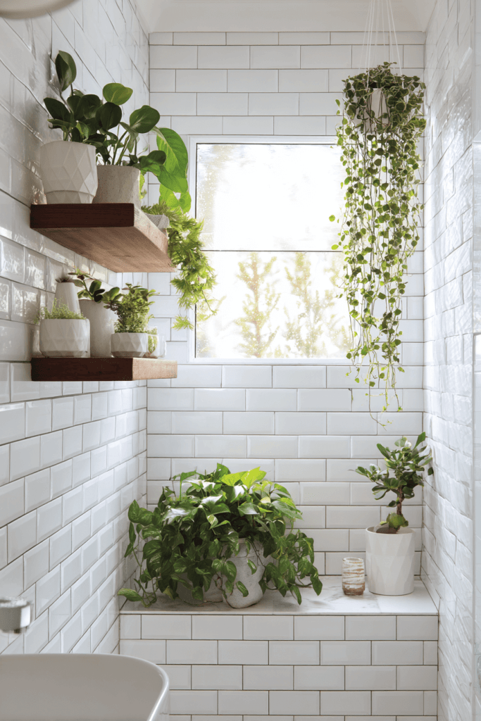 Plants breathe life into a bathroom, making it feel fresh and inviting.